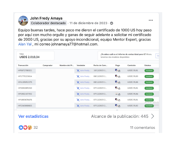 Para que comprendas cómo este programa te llevará de la mano a que generes tus primeras ventas y logres generar una constancia en tus resultados, cómo ya lo han hecho muchos de nuestros estudiantes.