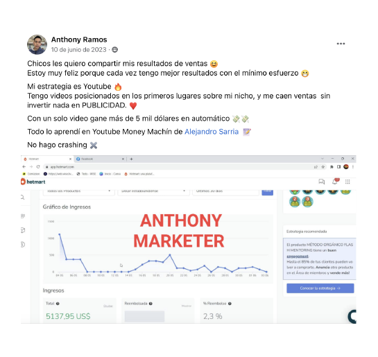 Esto lo hemos compartido en vivo a cientos de personas para que repliquen nuestras estrategias y cada vez más familias generen ingresos con este negocio. Ya han sido más de $626.109 dólares ganados con Hotmart haciendo crashing, vendiendo productos cómo seminarios online y creando nuestra agencia de coproducción. (te compartiremos lo que no nos funcionó para que lo evites y lo que nos funcionó para que lo repliques)
